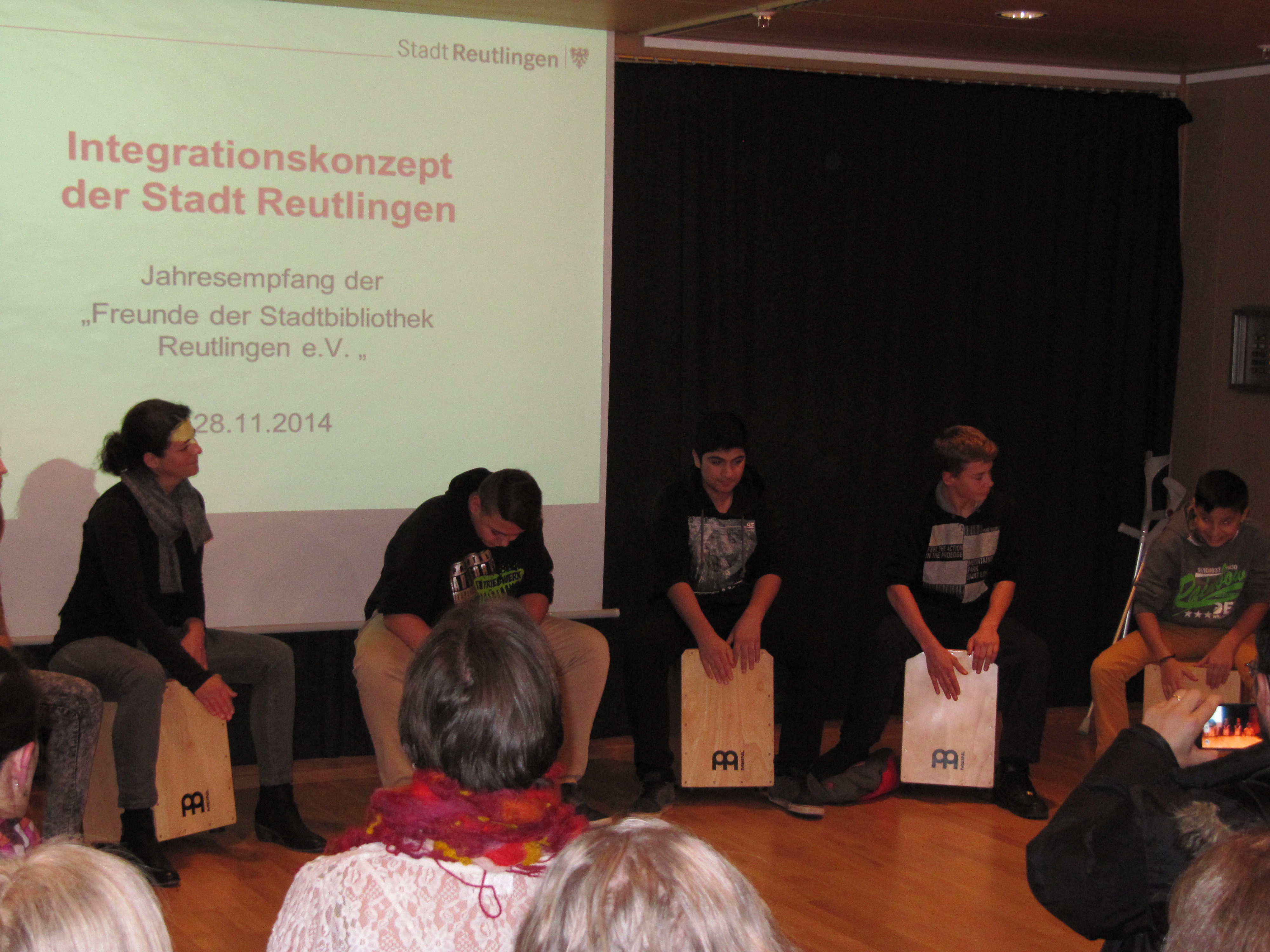 Sie sind hier: Startseite / - / Bibliothek A-Z / Freunde der Stadtbibliothek Reutlingen e.V. / Jahresempfang_2014 / FSTBRT 141128 Trommlergruppe.JPG