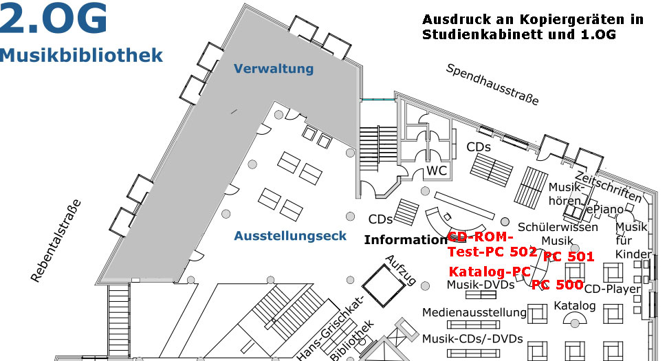Internet-/Arbeits-PCs in der Musikbibliothek/2.OG