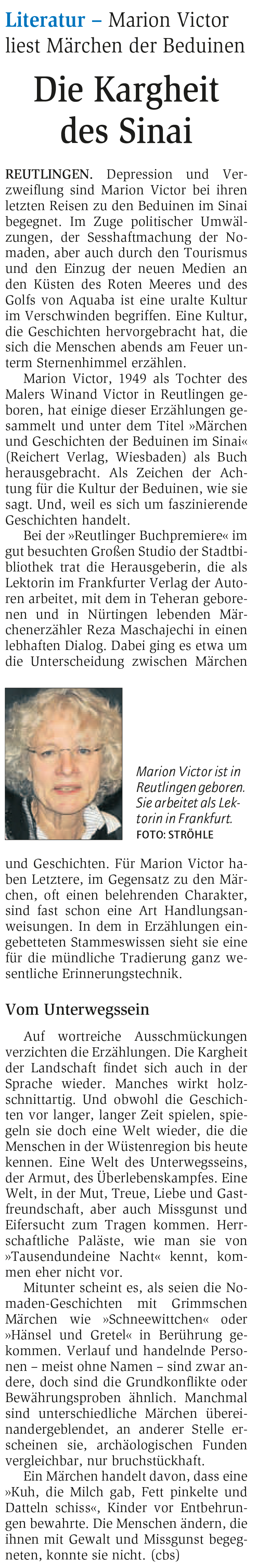 Literatur - Marion Victor liest Märchen der Beduinen | Reutlinger General-Anzeiger www.gea.de 26.9.2014