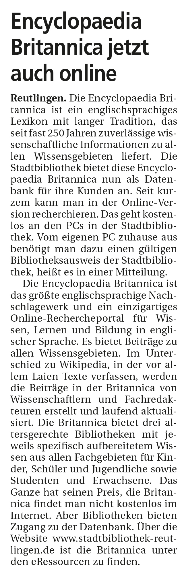 Sie sind hier: Startseite / Über uns / Presse / 2014 / Encyclopaedia Britannica jetzt auch online
