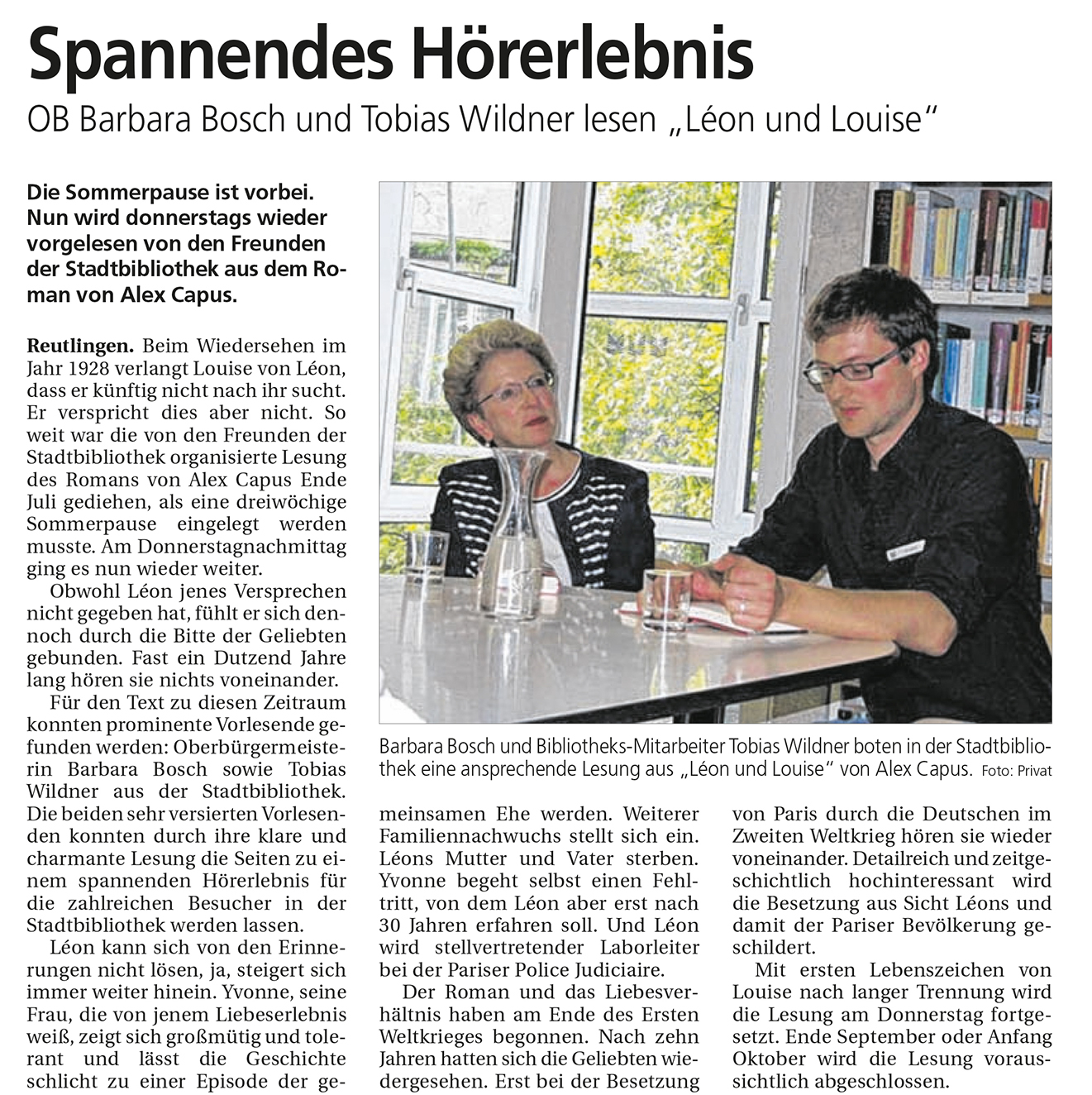 OB Barbara Bosch und Tobias Wildner lesen "Léon und Louise" | Reutlinger Nachrichten 1.9.2014