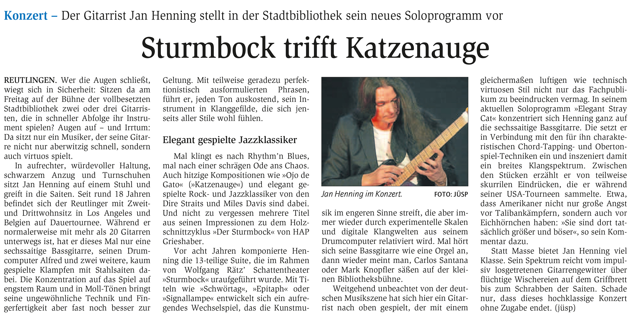 Konzert - Der Gitarrist Jan Henning stellt in der Stadtbibliothek sein neues Soloprogramm vor | Reutlinger General-Anzeiger www.gea.de 24.11.2014