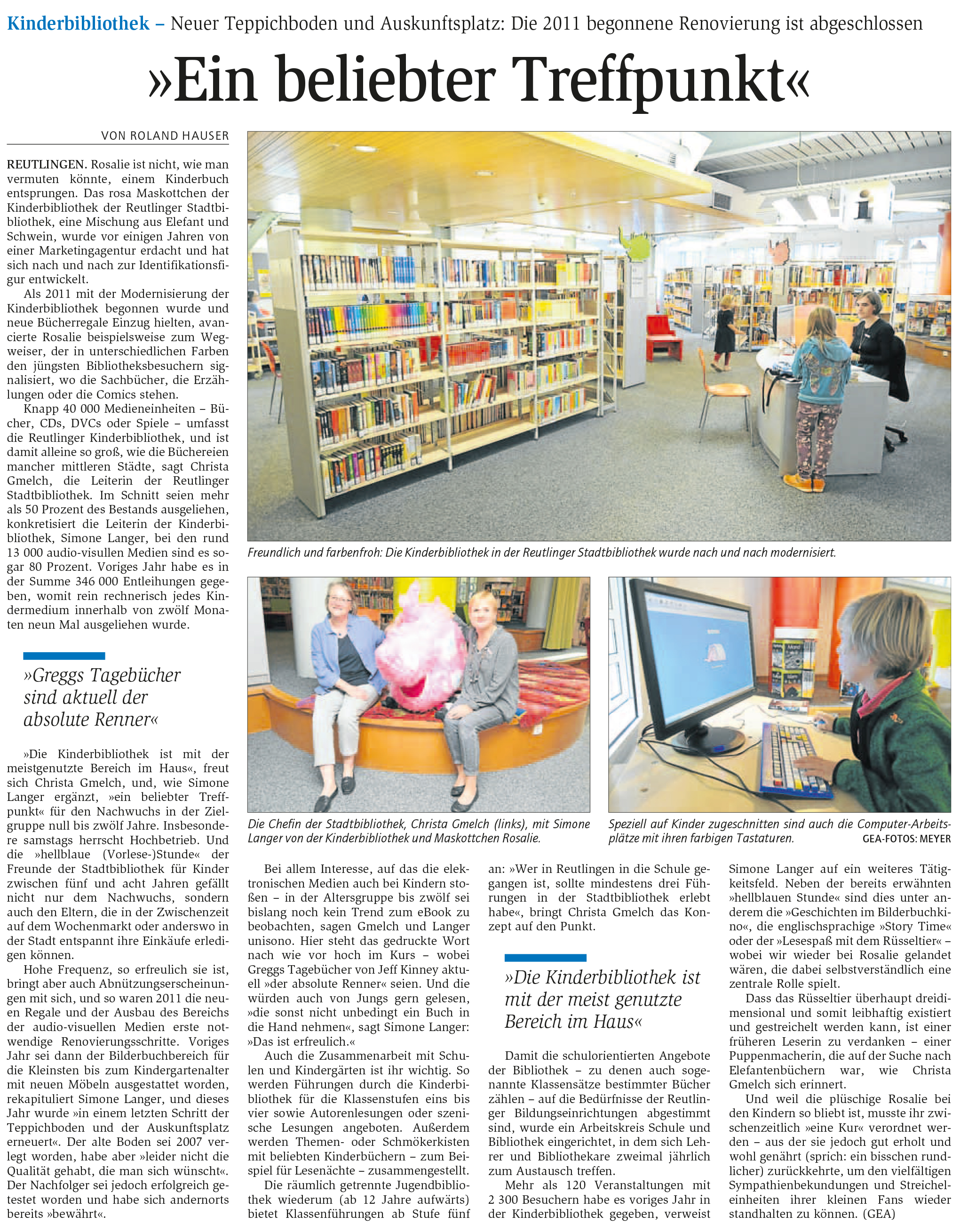 Kinderbibliothek: Neuer Teppichboden und Auskunftsplatz: Die 2011 begonnene Renovierung ist abgeschlossen | Reutlinger General-Anzeiger www.gea.de 15.9.2015