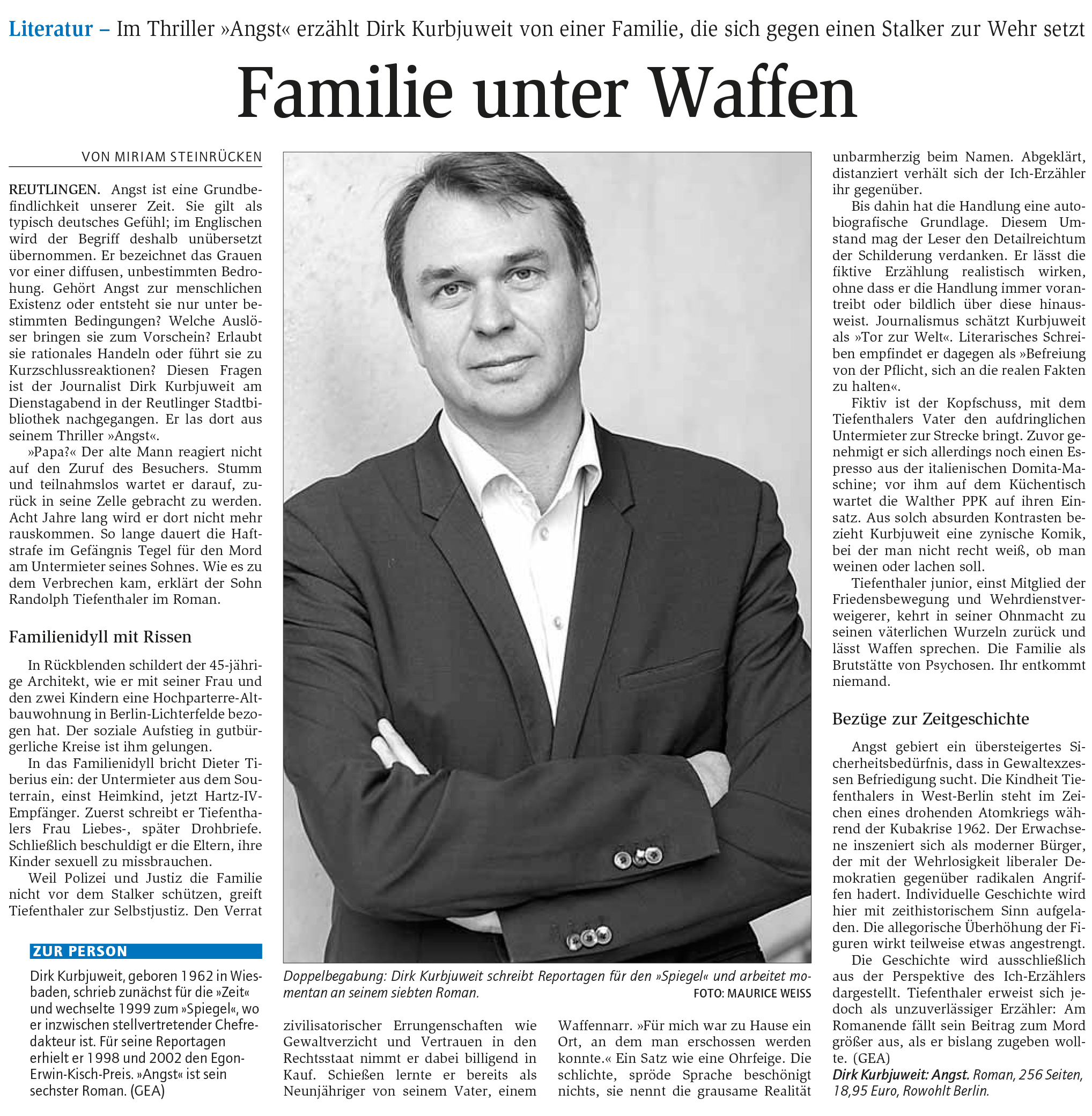 Literatur - Im Thriller "Angst" erzählt Dirk Kurbjuweit von einer Familie, die sich gegen einen Stalker zur Wehr setzt | Reutlinger General-Anzeiger www.gea.de 2.7.2015