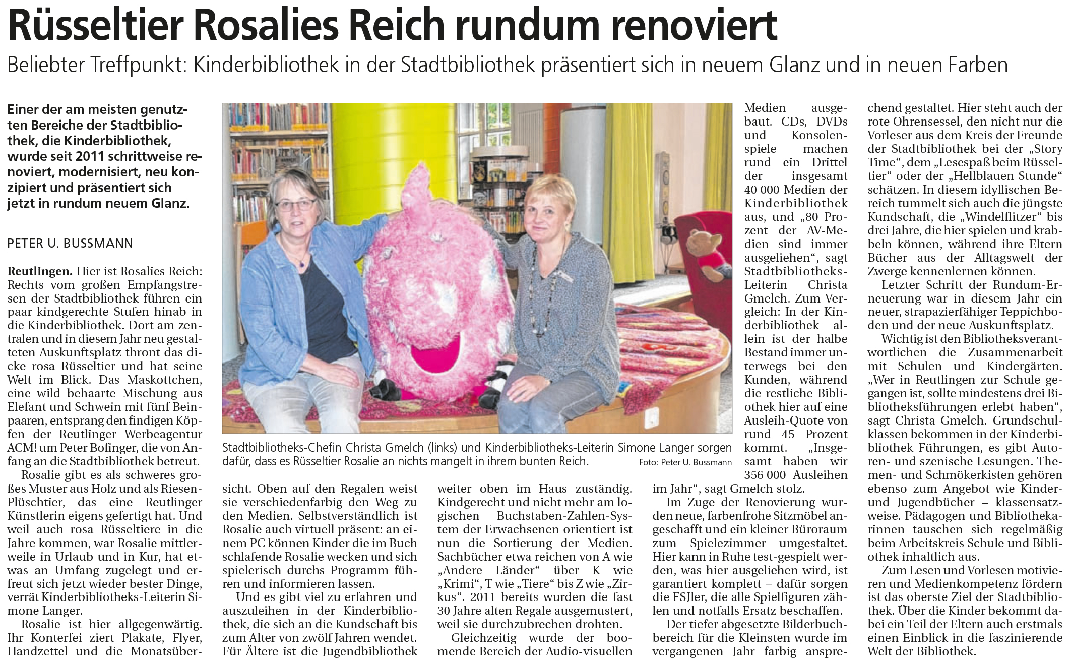 Beliebter Treffpunkt: Kinderbibliothek in der Stadtbibliothek präsentiert sich in neuem Glanz und in neuen Farben | Reutlinger Nachrichten 11.9.2015