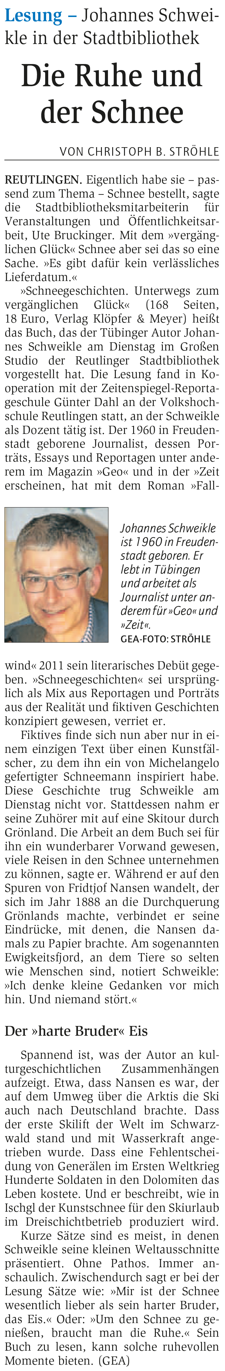Lesung - Johannes Schweikle in der Stadtbibliothek | Reutlinger General-Anzeiger www.gea.de 4.2.2016