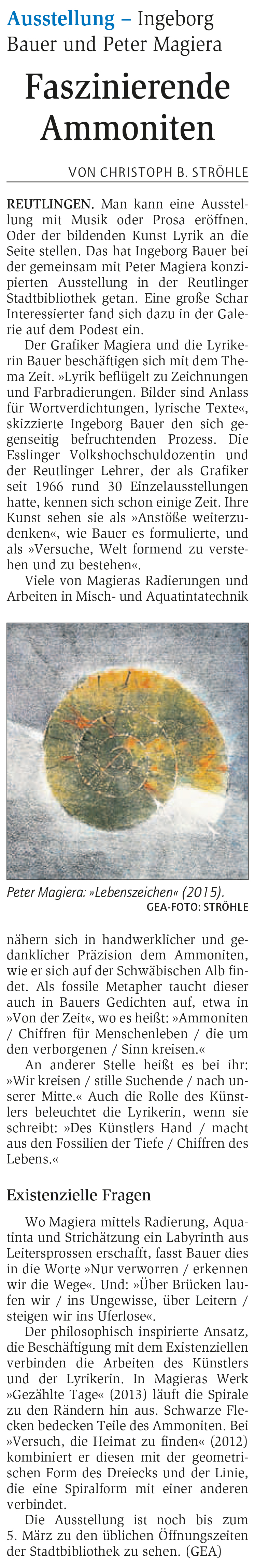 Ausstellung - Ingeborg Bauer und Peter Magiera | Reutlinger General-Anzeiger www.gea.de 29.1.2016