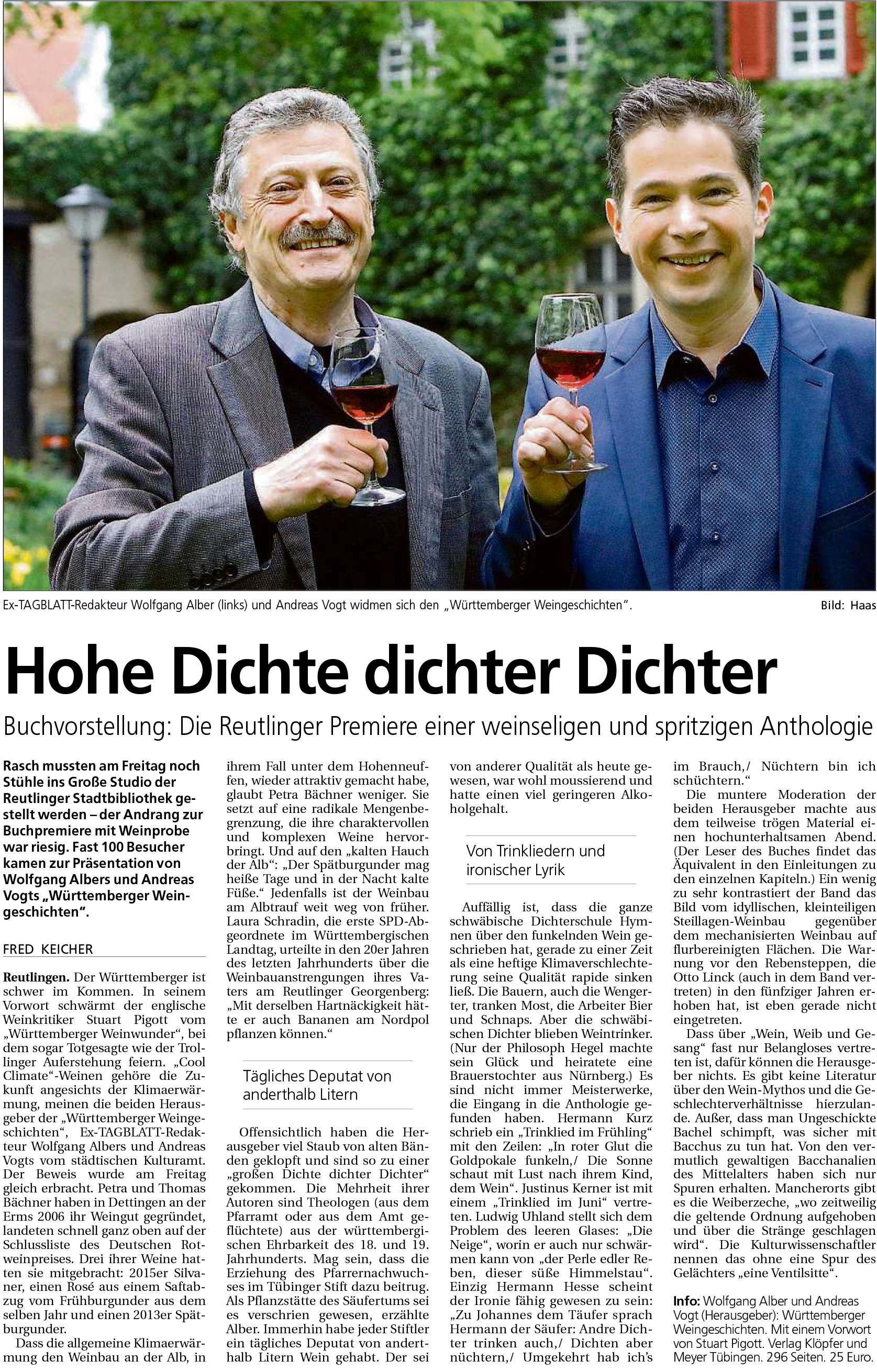 Buchvorstellung: Die Reutlinger Premiere einer weinseligen und spritzigen Anthologie | Schwäbisches Tagblatt 17.5.2016