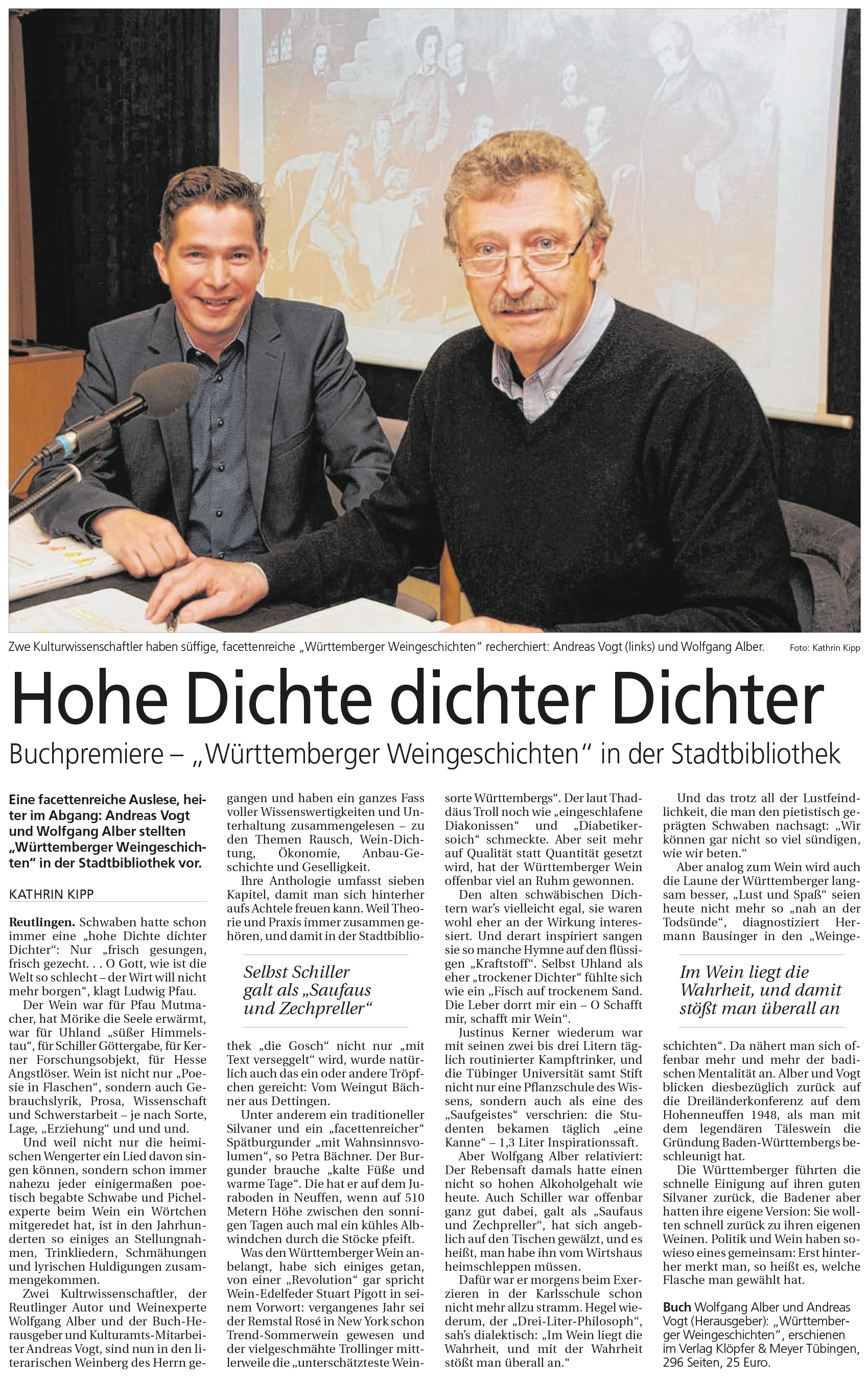 Buchpremiere - "Württemberger Weingeschichten" in der Stadtbibliothek | Reutlinger Nachrichten 18.5.2016