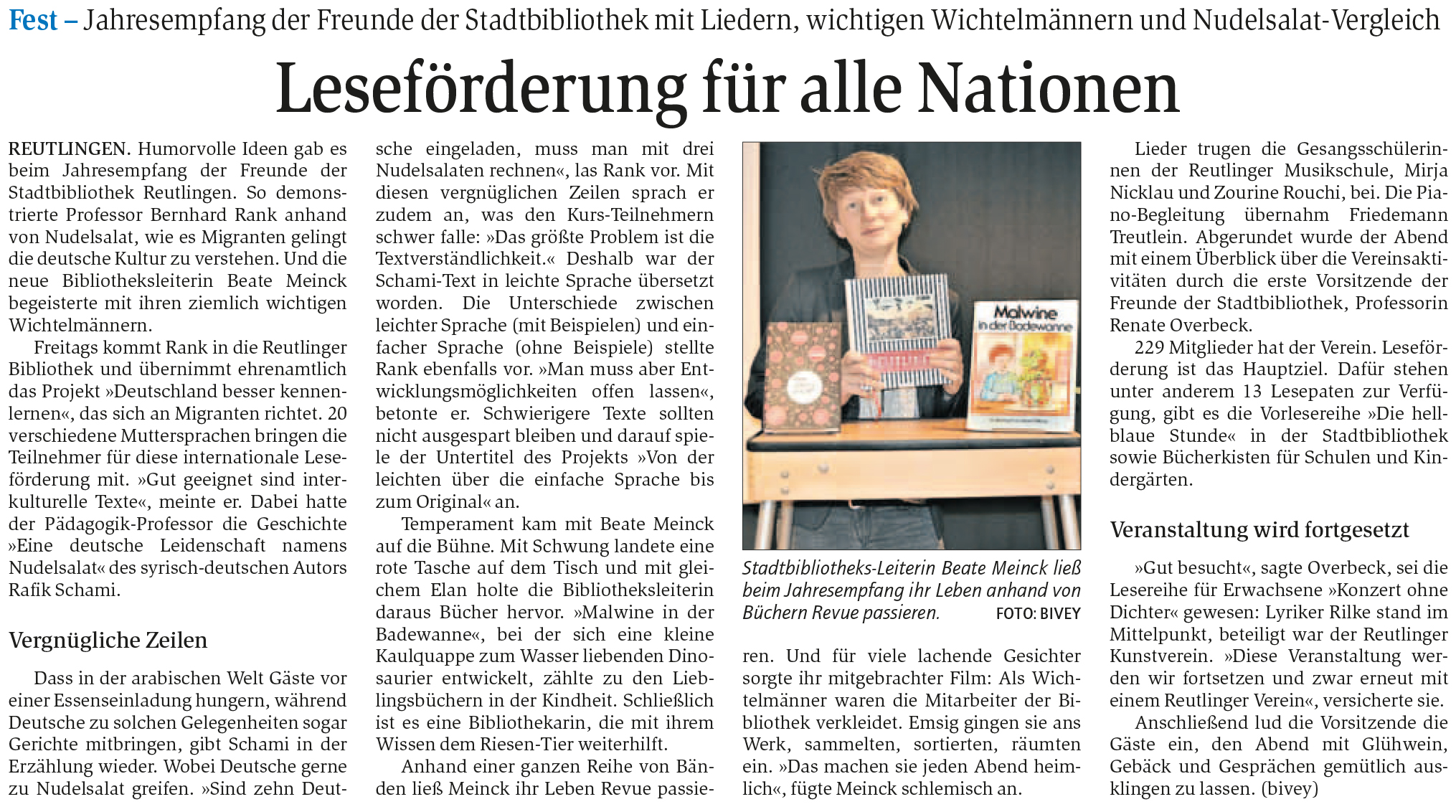Fest - Jahresempfang der Freunde der Stadtbibliothek mit Liedern, wichtigen Wichtelmännern und Nudelsalat-Vergleich | Reutlinger General-Anzeiger www.gea.de 28.11.2016