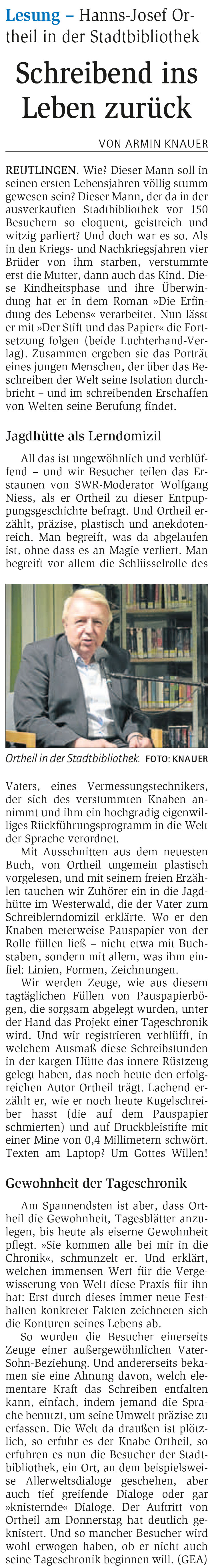 Lesung - Hanns-Josef Ortheil in der Stadtbibliothek | Reutlinger General-Anzeiger www.gea.de 30.4.2016
