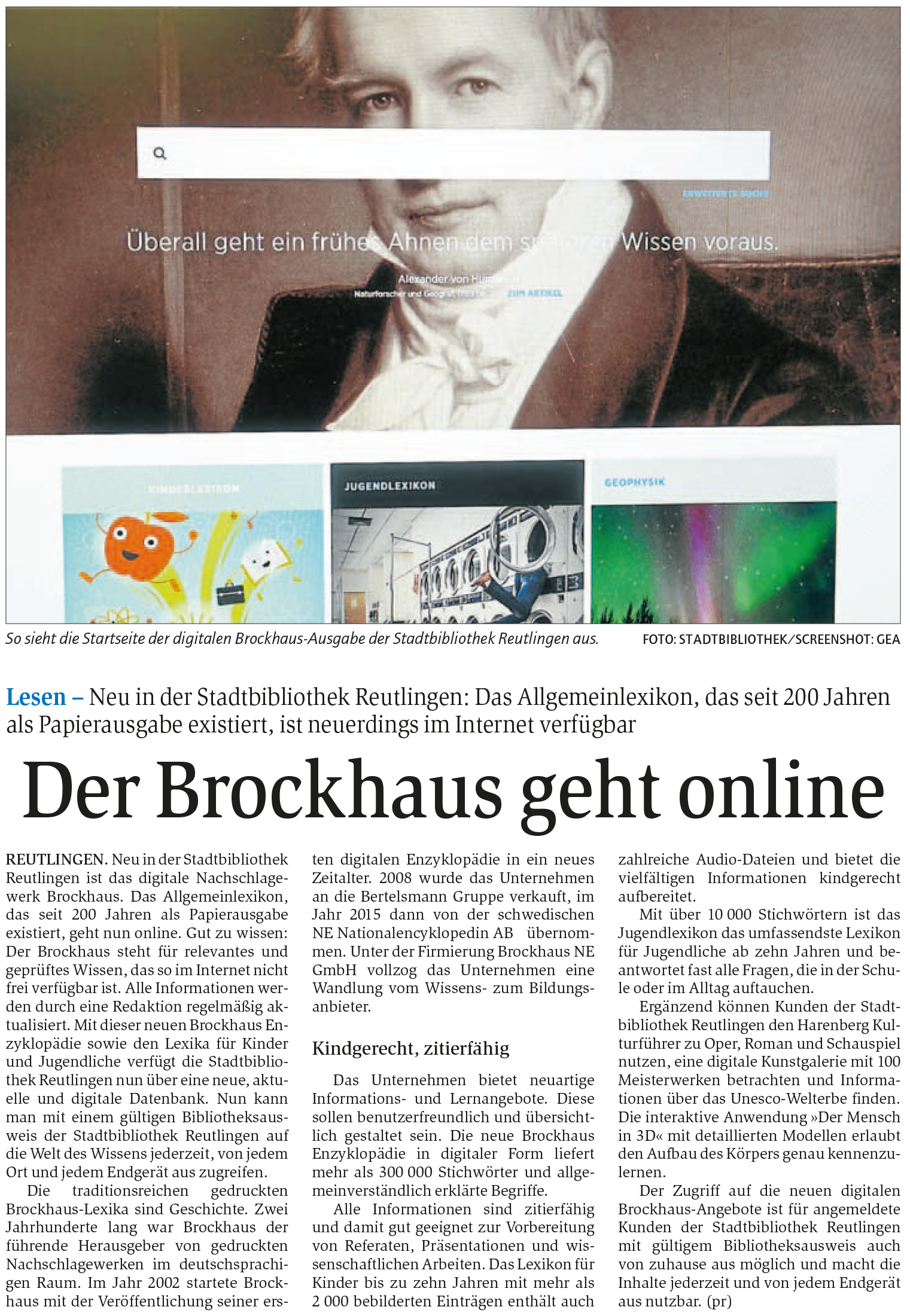Lesen - Neu in der Stadtbibliothek Reutlingen: Das Allgemeinlexikon, das seit 200 Jahren als Papierausgabe existiert, ist neuerdings im Internet verfügbar | Reutlinger General-Anzeiger www.gea.de 12.1.2017