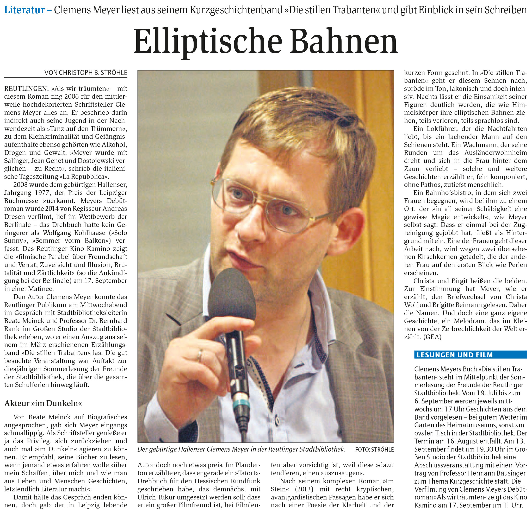 Literatur - Clemens Meyer liest aus seinem Kurzgeschichtenband "Die stillen Trabanten" und gibt Einblick in sein Schreiben | Reutlinger General-Anzeiger www.gea.de 14.07.2017