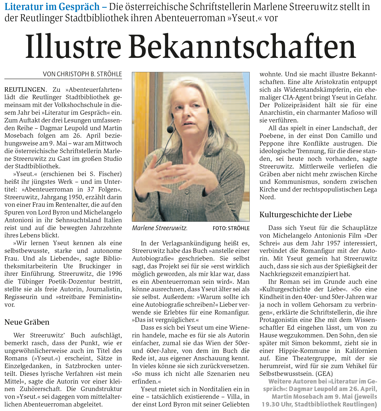 Literatur im Gespräch - Die österreichische Schriftstellerin Marlene Streeruwitz stellt in der Reutlinger Stadtbibliothek ihren Abenteuerroman "Yseut." vor | Reutlinger General-Anzeiger www.gea.de 7.4.2017