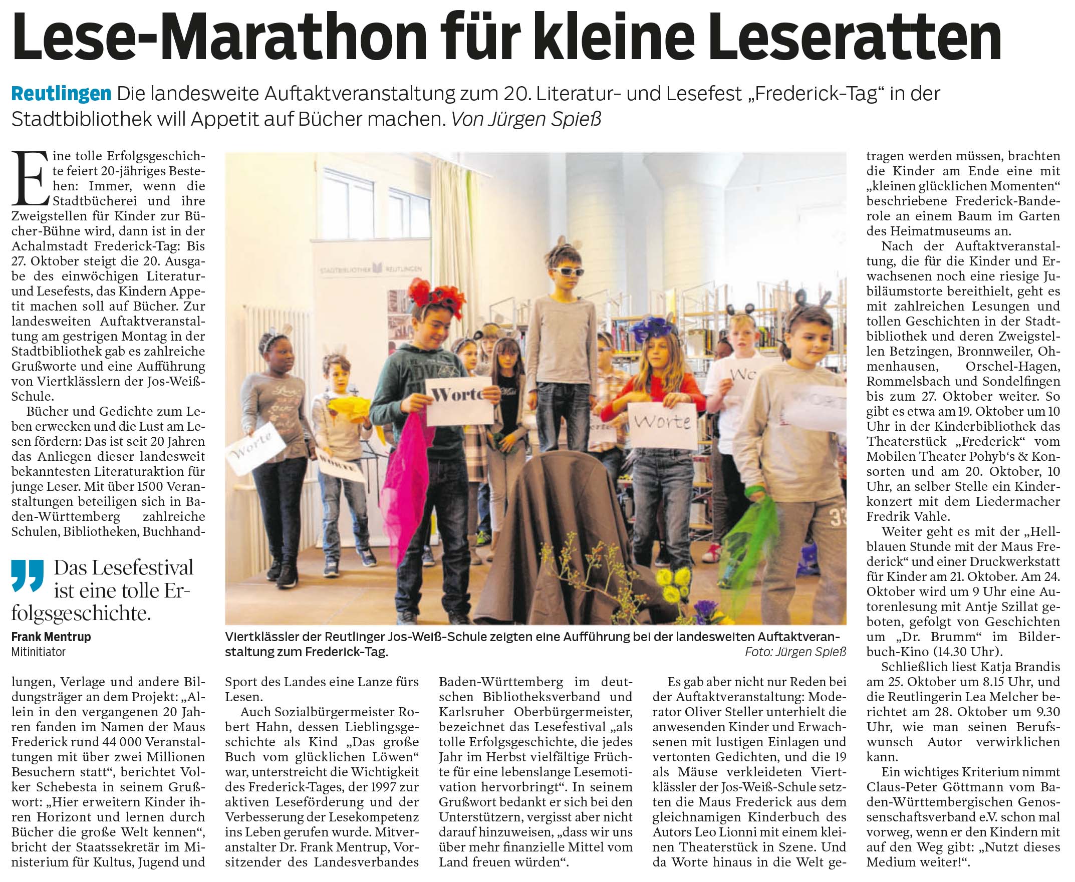 Reutlingen - Die landesweite Auftaktveranstaltung zum 20. Literatur- und Lesefest "Frederick-Tag" in der Stadtbibliothek will Appetit auf Bücher machen. | Reutlinger Nachrichten 17.10.2017