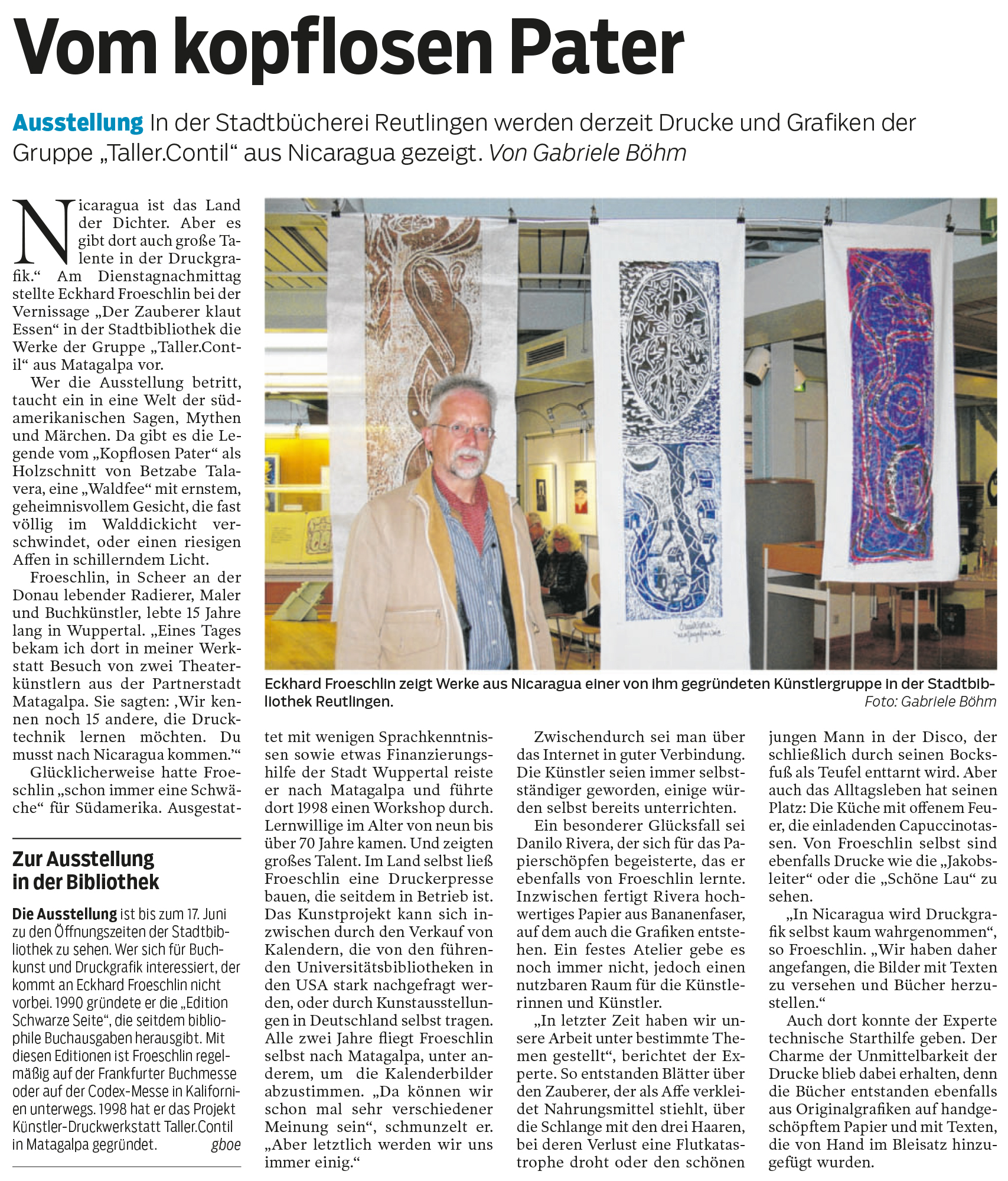 Ausstellung - In der Stadtbücherei Reutlingen werden derzeit Drucke und Grafiken der Gruppe „Taller.Contil“ aus Nicaragua gezeigt. | Reutlinger Nachrichten 13.4.2017