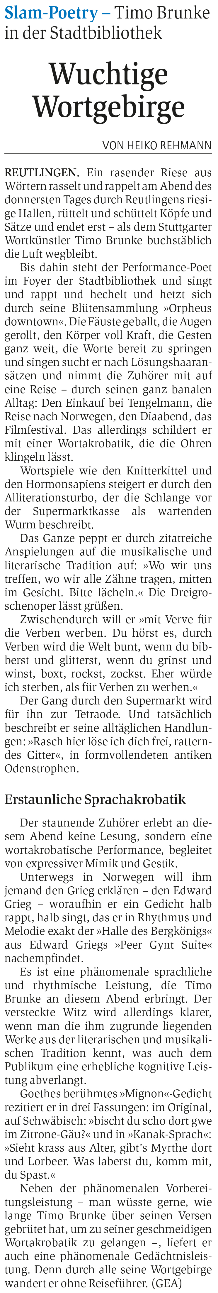 Slam-Poetry -Timo Brunke in der Stadtbibliothek | Reutlinger General-Anzeiger www.gea.de 28.10.2017