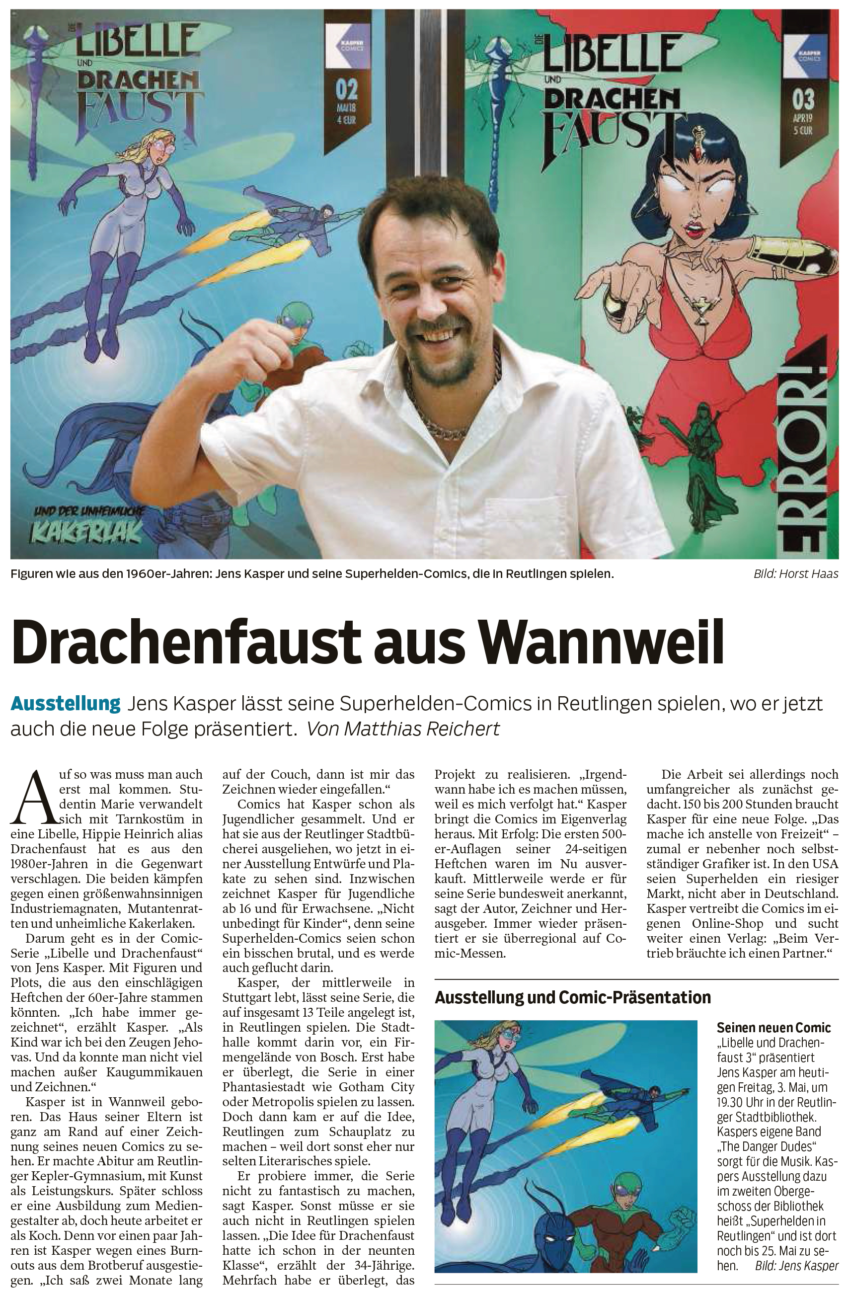 Ausstellung - Jens Kasper lässt seine Superhelden-Comics in Reutlingen spielen, wo er jetzt auch die neue Folge präsentiert. | Schwäbisches Tagblatt 3.5.2019