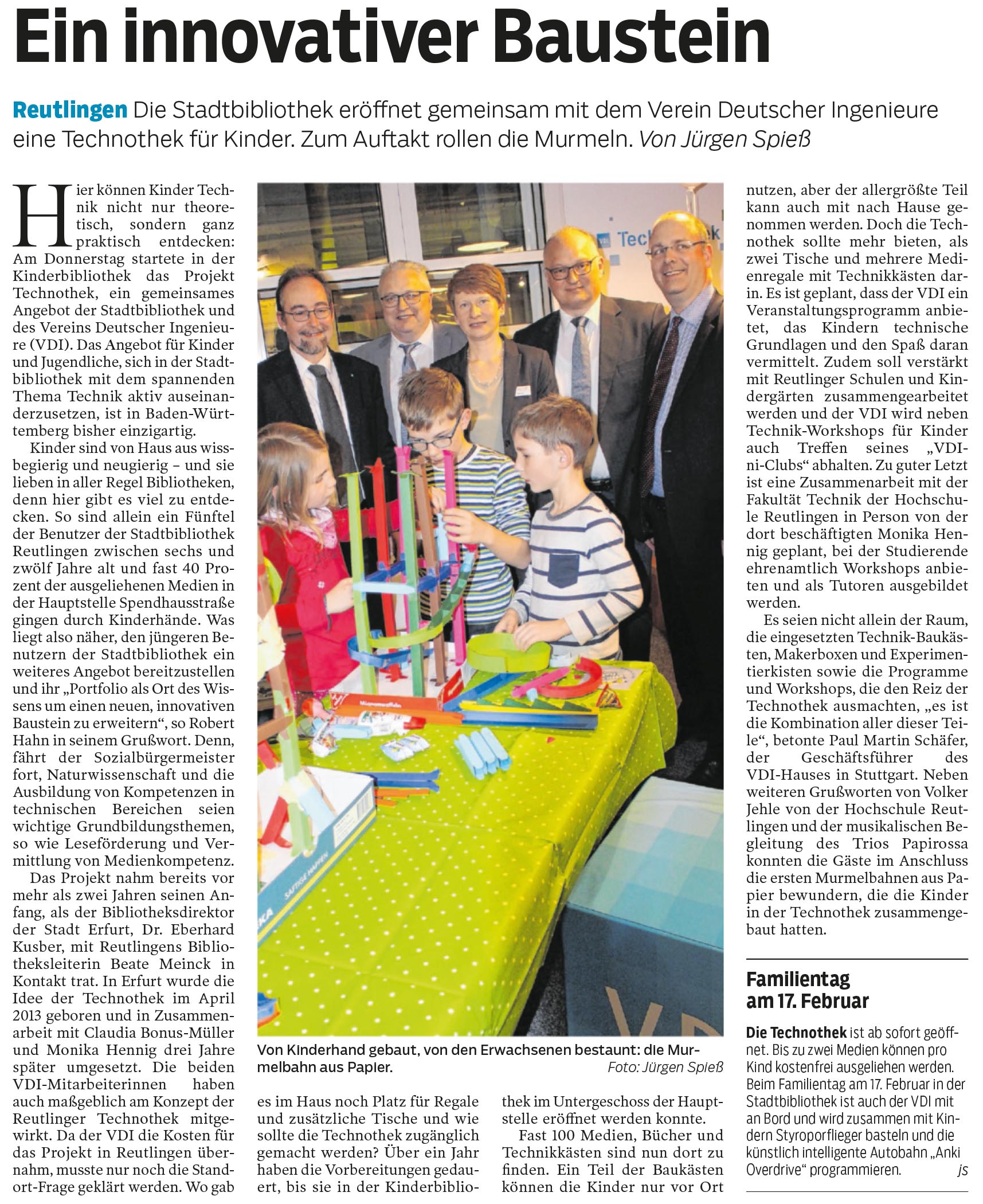 Reutlingen - Die Stadtbibliothek eröffnet gemeinsam mit dem Verein Deutscher Ingenieure eine Technothek für Kinder. Zum Auftakt rollen die Murmeln. | Reutlinger Nachrichten 9.2.2019