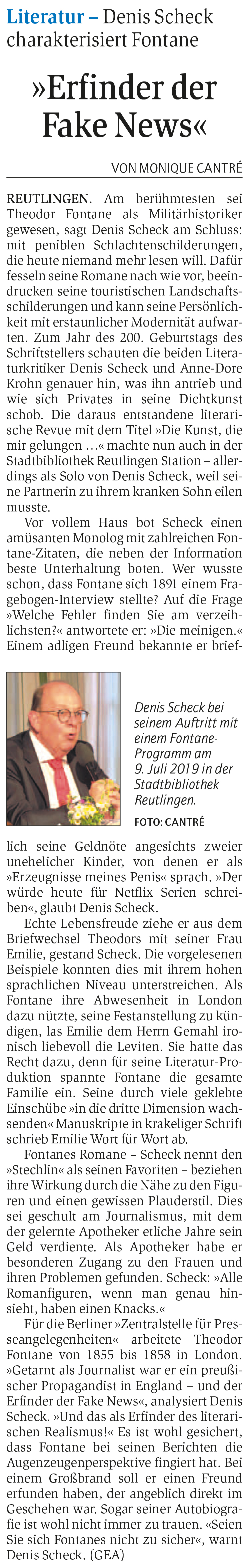 Literatur - Denis Scheck charakterisiert Fontane | Reutlinger General-Anzeiger www.gea.de 11.7.2019