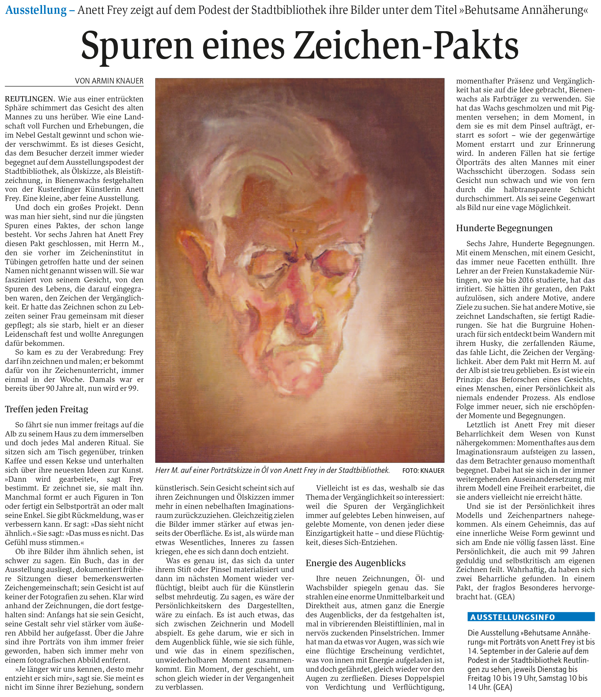 Ausstellung - Anett Frey zeigt auf dem Podest der Stadtbibliothek ihre Bilder unter dem Titel "Behutsame Annäherung" | Reutlinger General-Anzeiger www.gea.de 13.8.2019
