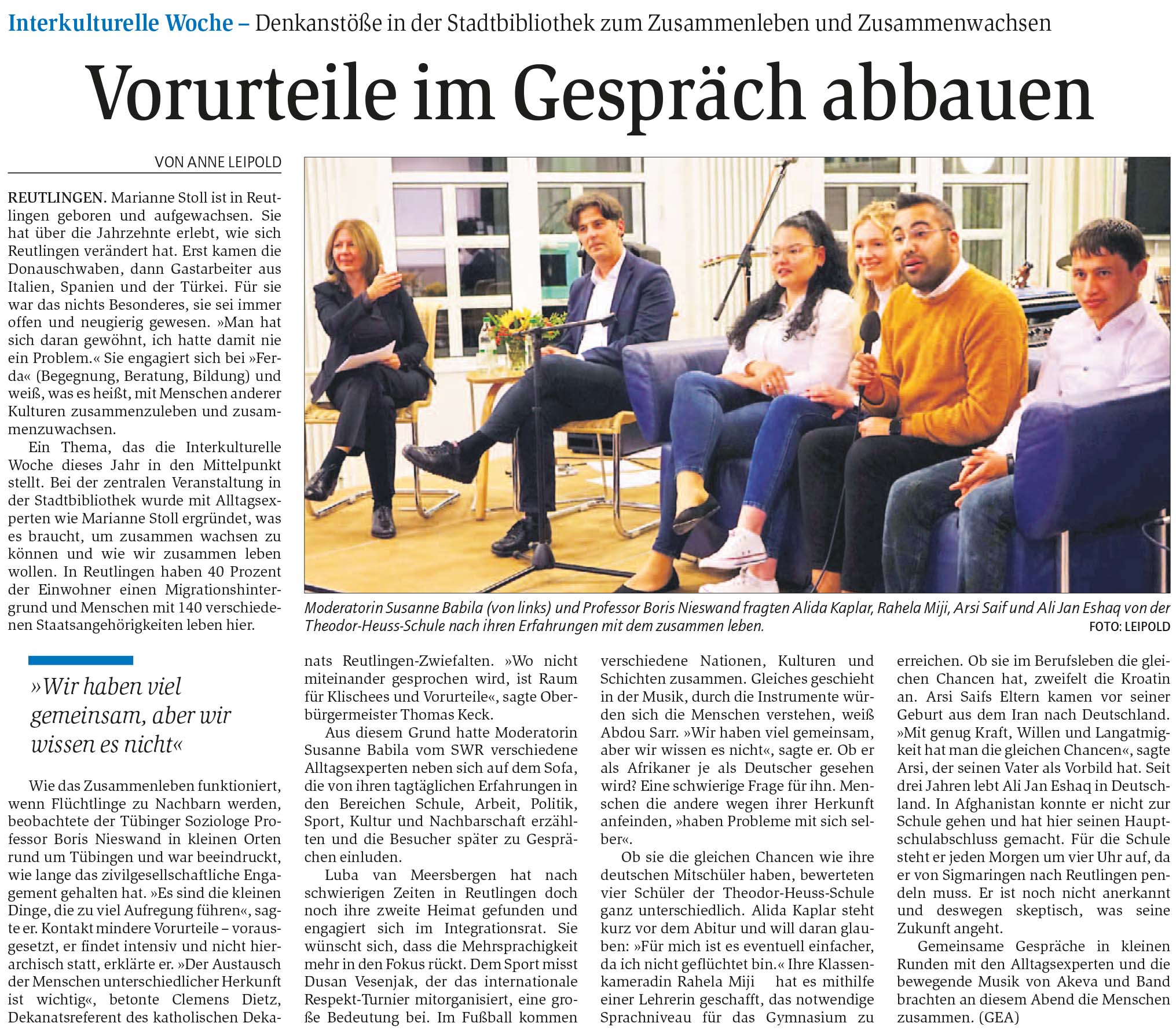 Interkulturelle Woche - Denkanstöße in der Stadtbibliothek zum Zusammenleben und Zusammenwachsen | Reutlinger General-Anzeiger www.gea.de 27.9.2019